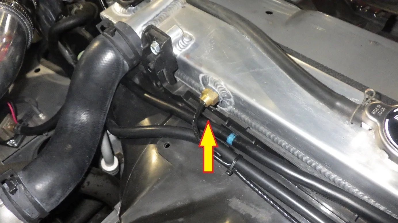 HPIのラジエターには水温センサーを取付けるための1/8PTのボスが取付けられています。