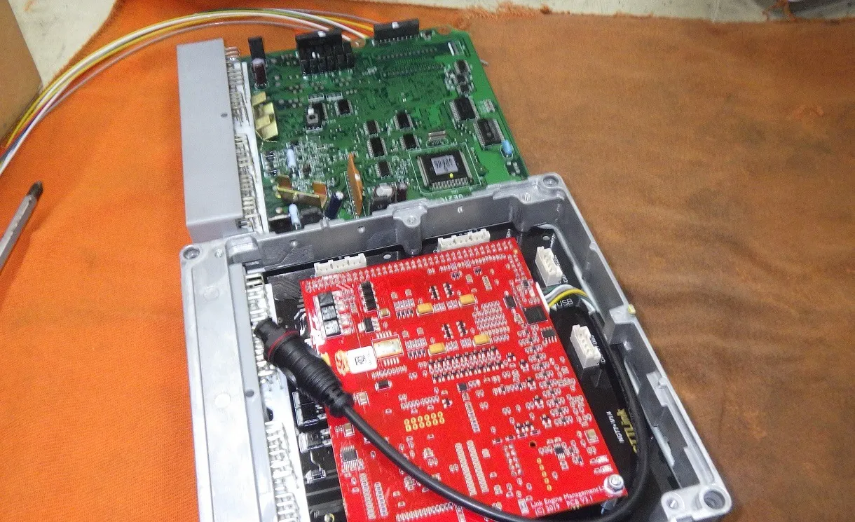 こちらの画像はLINKの基盤と純正ECUの基盤を交換しています。