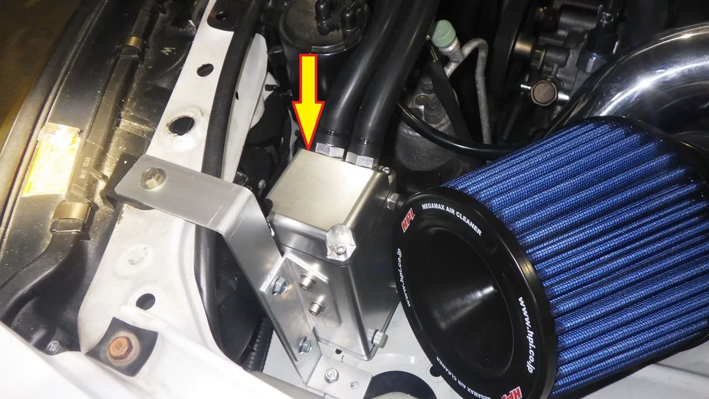 ブローバイホースの経路変更に伴いオイルキャッチタンクを設けました。
