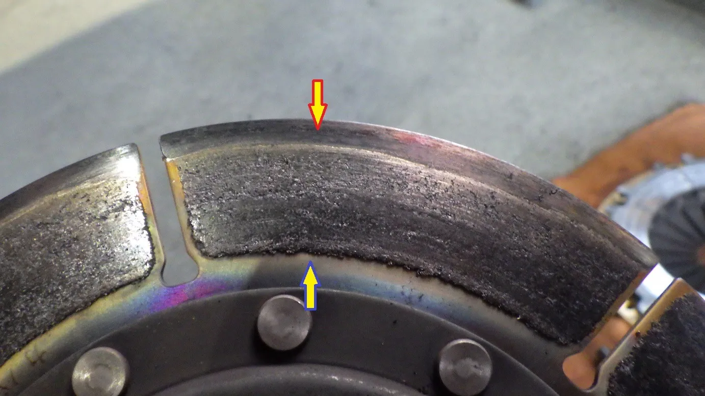そうすると先ほどの画像のディスクの赤矢印部分(外側)だけにプレートが押し付けられここだけ摩耗します。